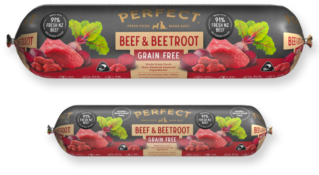 PERFECT dog rolls come in two delicious flavours: Beef & Beetroot and Chicken & Pumpkin to keep mealtime exciting, interesting and satisfying for your dog.